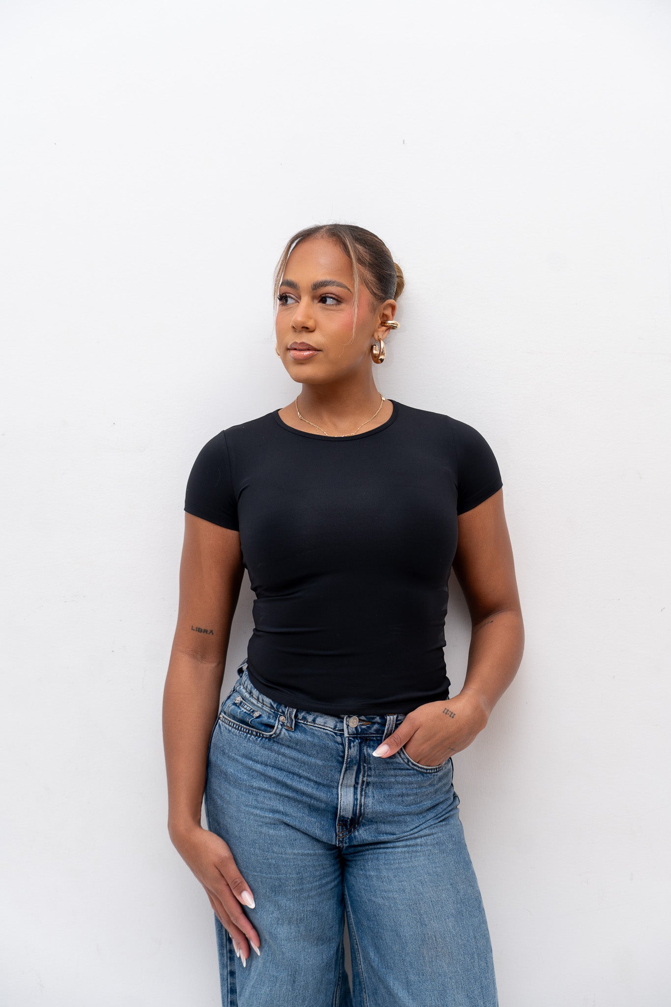 SECOND SKIN TOP: c’est ce t-shirt effet seconde peau qui épouse le corps à la perfection. Sa matière ultra douce, respirante et gainante sculpte la silhouette sans jamais comprimer, pour un rendu lisse, net et hyper flatteur.